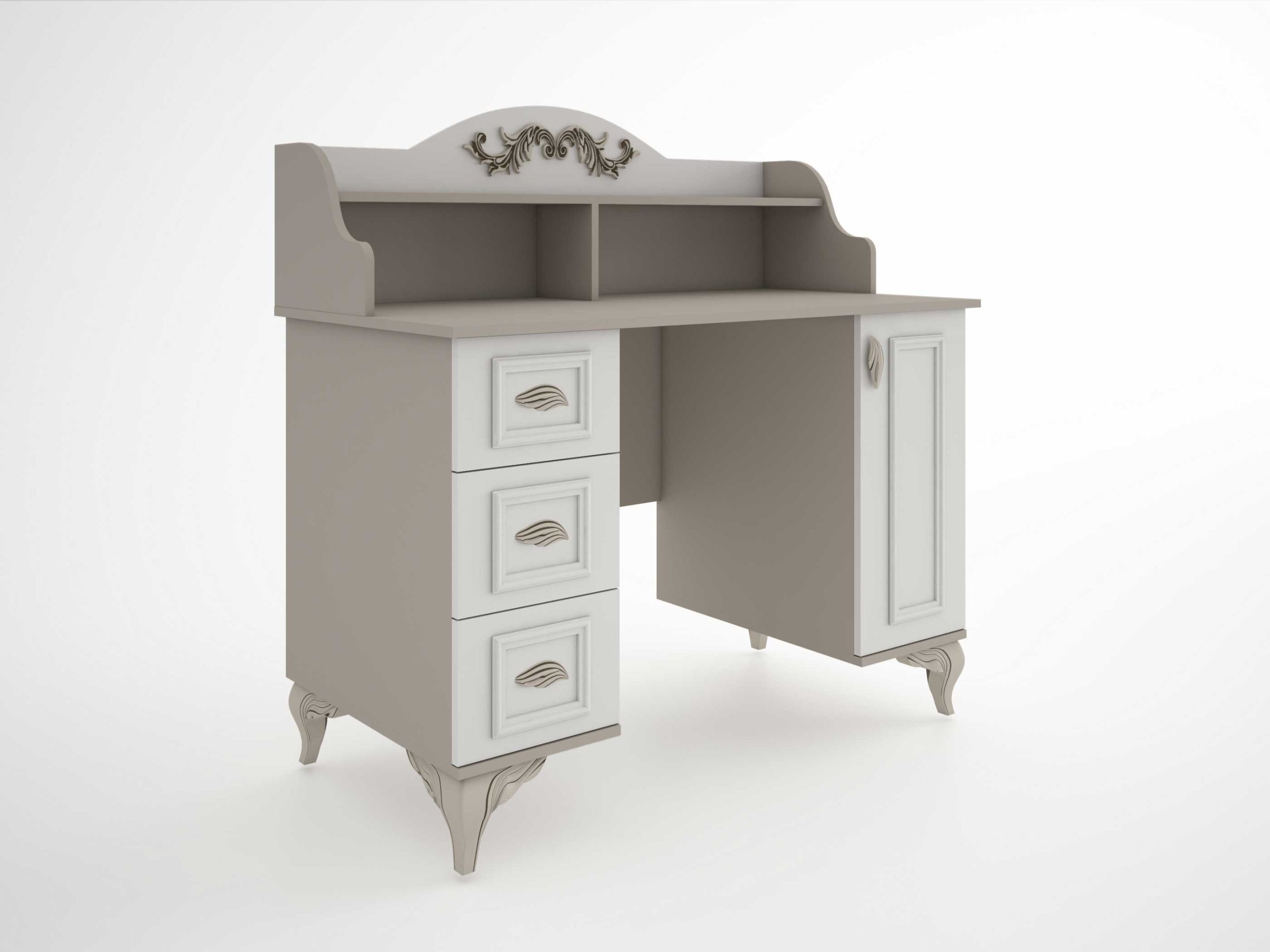 اگر به‌دنبال میزی هستید که هم‌زمان هویت کلاسیک را به اتاق بیاورد و کارایی روزمره شما را پوشش دهد، این میز تحریر از سری کلاسیک ژیک دقیقاً برای همین هدف ساخته شده است. ترکیب کنتراستِ کرم و طوسی روشن با قاب‌بندی‌های ظریف درب و کشو، در کنار تاج تزئینی بالاسری، حسِ یک قطعه‌ی دکوراتیو اصیل را القا می‌کند؛ در حالی‌که شلف بالایی و چینش کشو و کمد، نظم و بهره‌وری را بالا می‌برد.