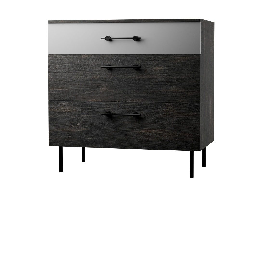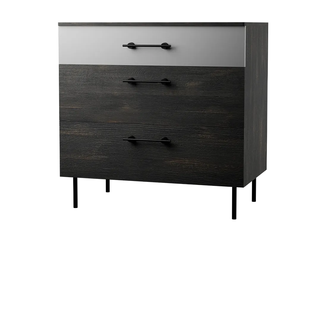 طراحی دراور آیرون نئوپان بر پایه ترکیب رنگ مدرن، سطح ملامینه (نئوپان) پویا و پایه‌های فلزی کوره‌ای شکل گرفته است. دستگیره‌های فلزی ترک، ظاهر صنعتی و شیک محصول را تقویت می‌کنند. استفاده از ریل مخفی آرام‌بند نیز تجربه‌ای روان و بی‌صدا هنگام استفاده از کشوها ایجاد می‌کند.