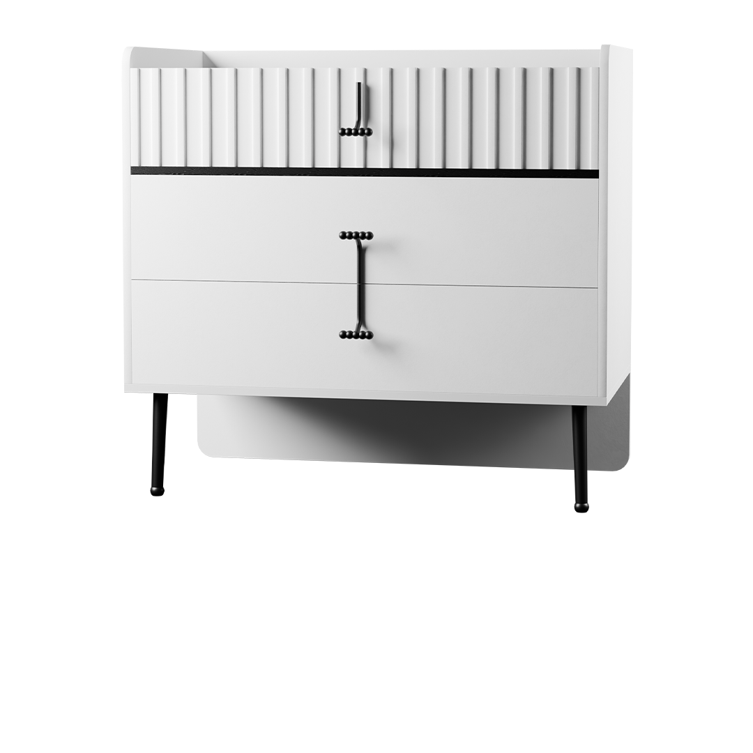 ترکیب رنگ مشکی و سفید این دراور، جلوهای مینیمال و مدرن ایجاد میکند. این طراحی با سرویس خواب بلک اند وایت هماهنگی کامل دارد و به گفته Journal of Interior Design (2019)، تضاد رنگی باعث جذابیت بصری و حس تعادل در فضا میشود.