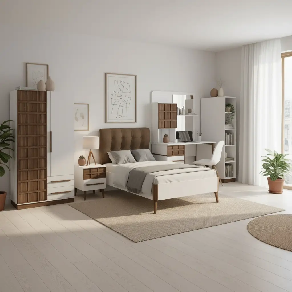 آراکو انتخابی است برای کسانی که به دکوراسیون منظم، کاربردی و شیک اهمیت میدهند. از تخت و کمد گرفته تا میز آرایش و کتابخانه، هر جزء این مجموعه با جزئیات دقیق و متریال مرغوب ساخته شده تا دوام، کارایی و زیبایی را در کنار هم ارائه دهد.