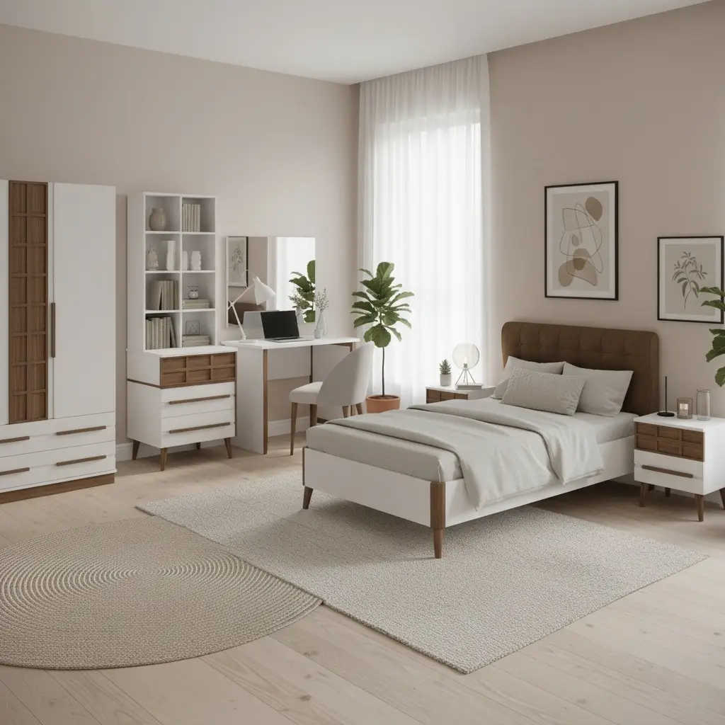 سرویس خواب آراکو با طراحی مدرن و ترکیب رنگ سفید و چوب گردو، به راحتی با انواع سبکهای دکوراسیون هماهنگ میشود. از سبکهای مدرن، اسکاندیناوی، مینیمال تا نئوکلاسیک، این سرویس خواب زیبایی و کارایی را به هر فضا میآورد.