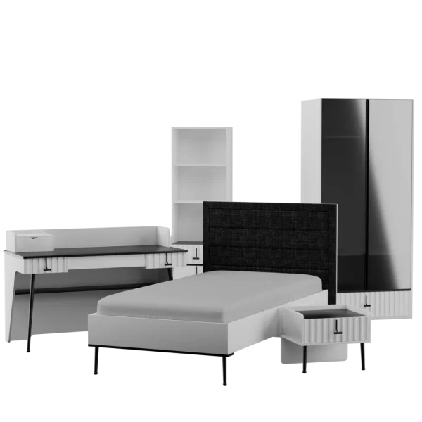 سرویس خواب بلک اند وایت ژیک برای کسانی طراحی شده که میخواهند تعادلی بینقص بین زیبایی مینیمال و کارکرد روزمره داشته باشند. تضاد سیاه و سفید به فضا شخصیت میدهد، در حالیکه فرمهای فریملس و خطوط تمیز، حس آرامش و نظم را تقویت میکنند. انتخاب آگاهانهی متریال—از MDF پویا تا رنگ پلیآرتان و پایههای فلز کورهای—دوام و ظاهر حرفهای را تضمین میکند.