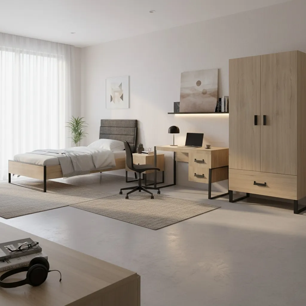 سرویس خواب لوکا پلاس با طراحی مدرن و ترکیب چوب و فلز، در سبکهای مختلفی چون مدرن، صنعتی، اسکاندیناوی، مینیمال و نئوامروزی قابل استفاده است. این مجموعه با خطوط ساده، رنگهای طبیعی و متریال مقاوم، فضایی منظم، شیک و هماهنگ برای هر نوع دکوراسیونی ایجاد میکند.