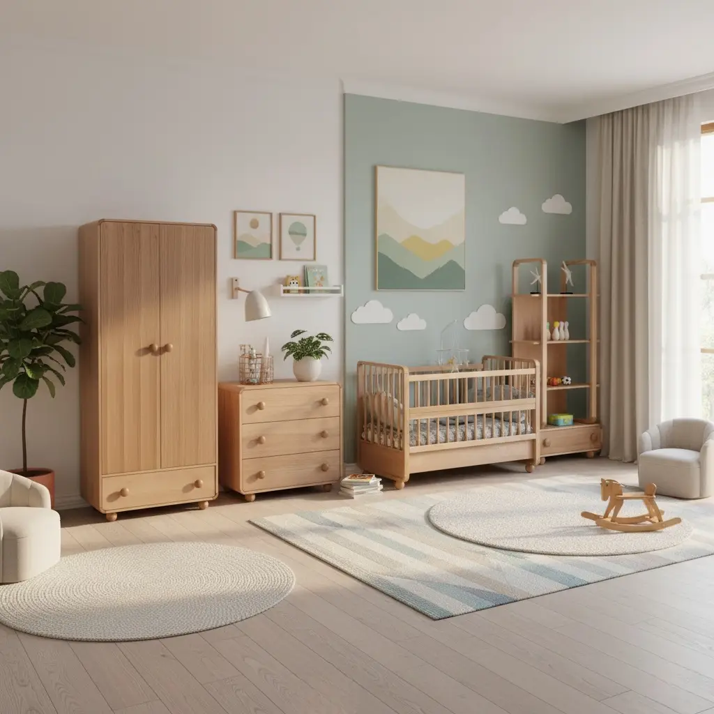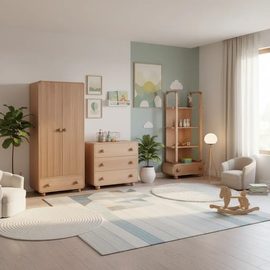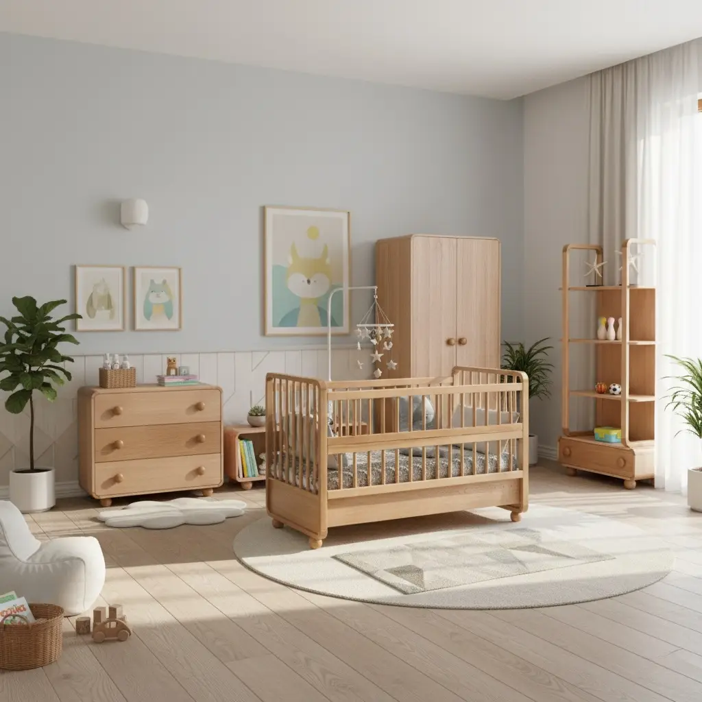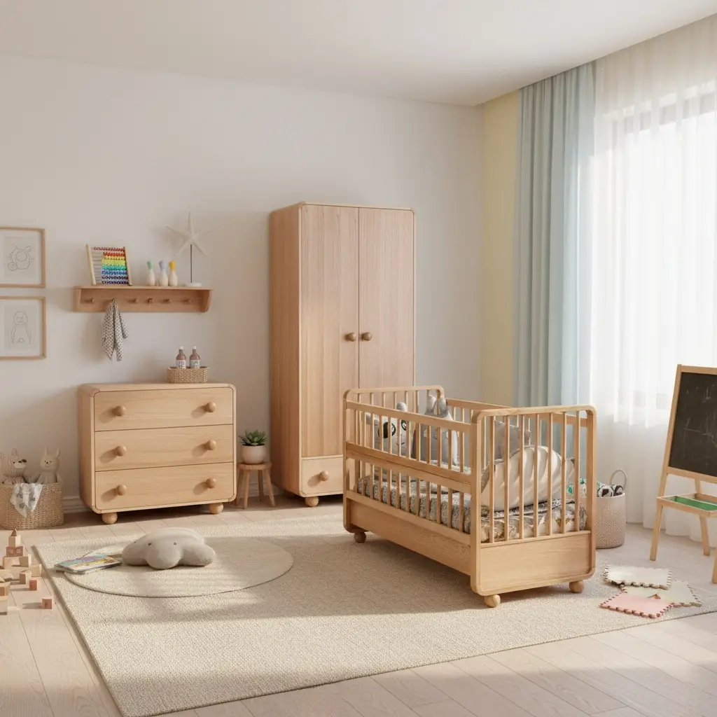 استفاده از چوب بلوط طبیعی: این متریال علاوه بر داشتن دوام بالا، هیچگونه مواد مضر یا شیمیایی ندارد و برای استفاده در اتاق کودک کاملاً ایمن است.