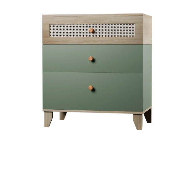 از نئوپان M185 پویا با رنگ سبز و دستگیرههای چوبی راش ساخته شده که دوام و زیبایی را تضمین میکنند. - آیا دراور لوف برای فضاهای کوچک مناسب است؟