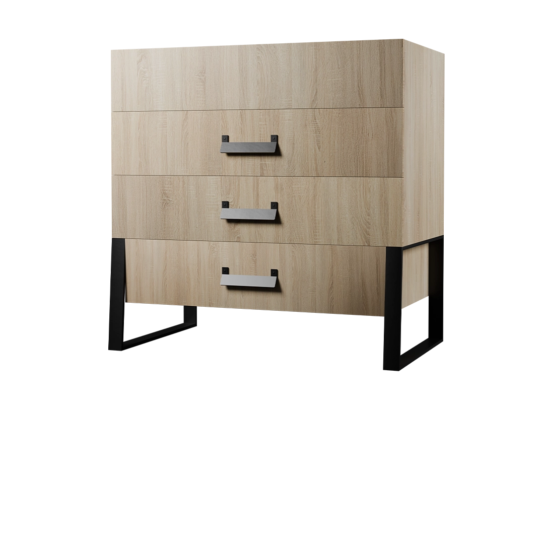دراور لوکا پلاس نئوپان با ترکیب چوب روشن و فلز مشکی، ظاهری مدرن و آرام ایجاد میکند. خطوط ساده و بدون تزئینات، آن را برای چیدمانهای مختلف مناسب میسازد. چهار کشوی یکدست و منظم، ظاهر دراور را تمیز نگه میدارند و در صورت افزودن آیینه، میتواند نقش میز آرایشی را هم برعهده بگیرد.