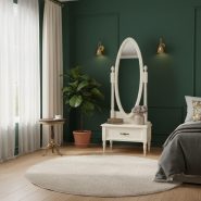 تخت 180×200 پارلا با بدنه ملامینه و روکش طرح چوب، همراه با رنگهای کرم و سبز، جلوهای گرم و طبیعی به اتاق میبخشد. شاسیکشی مهندسیشده و پایههای تقویتی، دوام آن را تضمین میکنند.