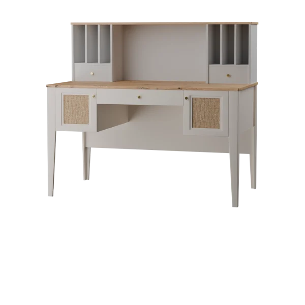 میز تحریر کارولین با صفحه رویی طرح چوب و بافت حصیری، جلوهای گرم و مدرن دارد. جنس MDF با پوشش پلیاورتان، مقاومت بالایی ارائه میدهد. این میز برای دانشآموزان و علاقهمندان به سبک بوهو طراحی شده است. فضای نگهداری متنوع، نظم را تضمین میکند.