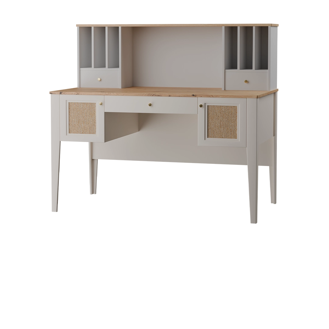 میز تحریر کارولین بهراحتی با دکوراسیونهای مختلف هماهنگ میشود. رنگ خنثی و طراحی بوهو، آن را برای اتاقهای کوچک مناسب میکند. میتوانید آن را کنار پنجره یا دیوار قرار دهید. برای جذابیت بیشتر، از گیاهان یا دکوریهای مینیمال استفاده کنید.