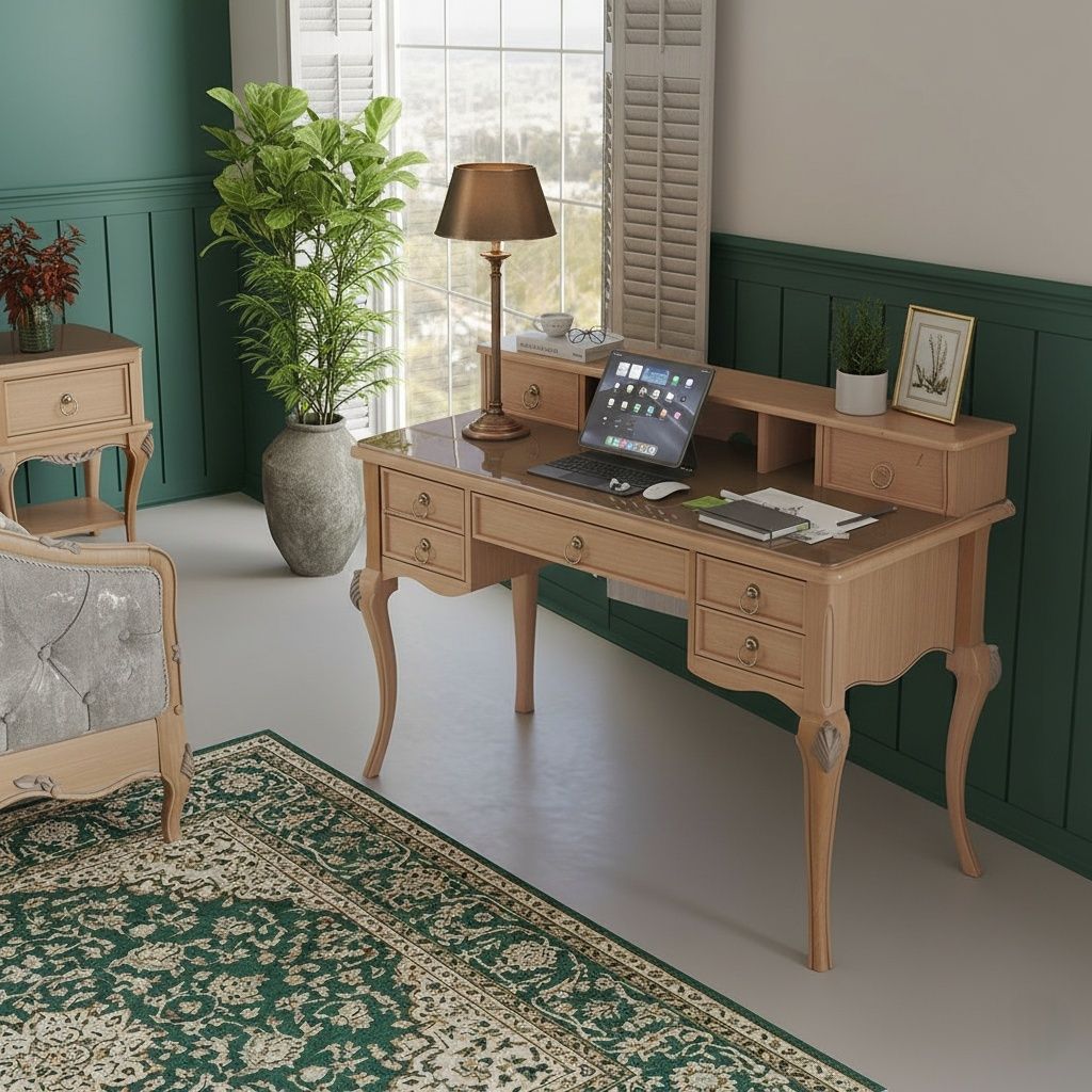 طراحی میزتحریر روکو با الهام از سبک نئوکلاسیک شکل گرفته و خراطی و منبت‌ کاری‌ های ظریف، به آن هویتی متمایز داده‌ اند. فرم متعادل بدنه و جزئیات دقیق، باعث می‌شود این میز علاوه بر کاربردی بودن، جلوه‌ ای چشم‌ نواز و هماهنگ با دکوراسیون اتاق داشته باشد.