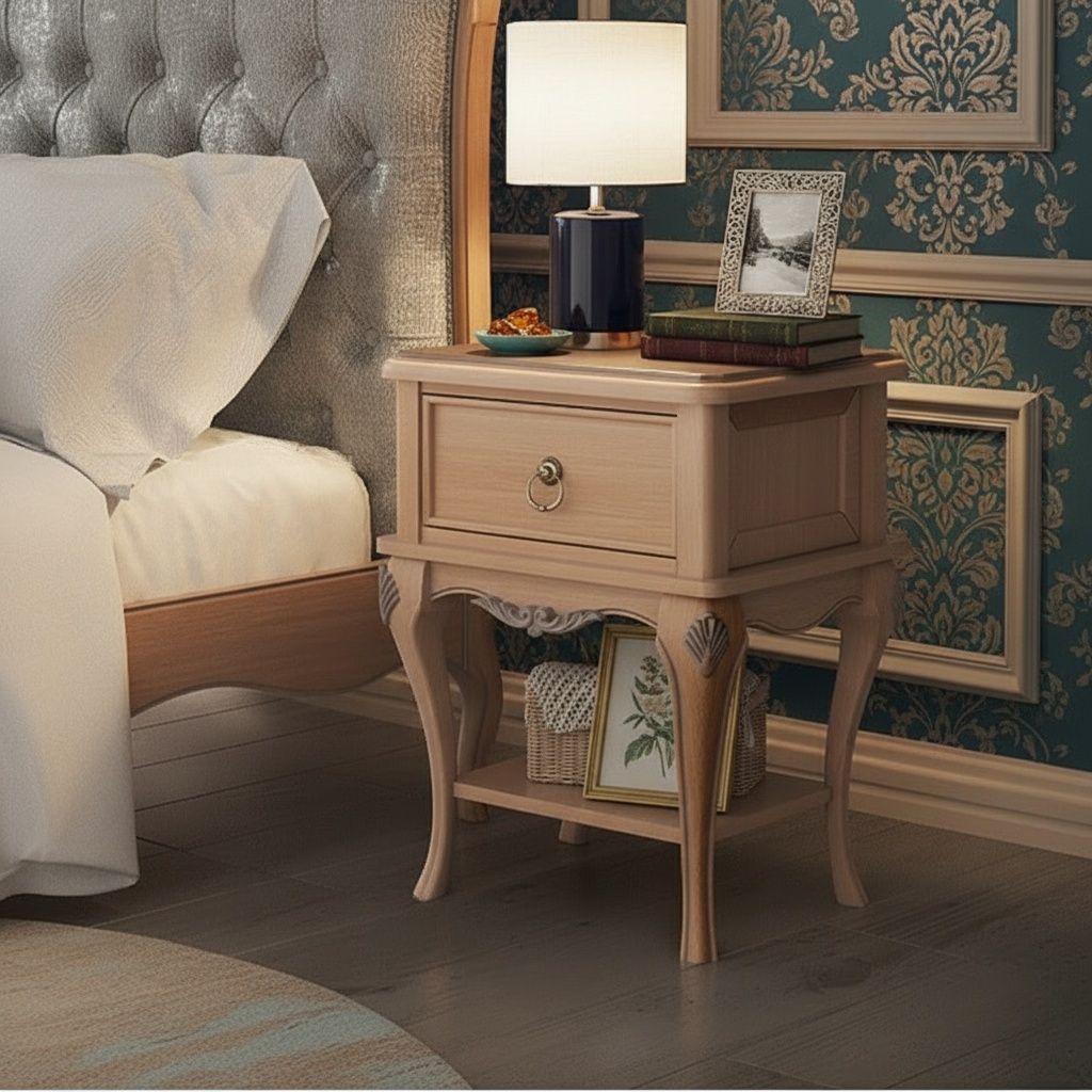 پاتختی روکو ژیک با طراحی نئو کلاسیک و جزئیات ظریف خراطی و منبت‌کاری، جلوه‌ ای شیک و هماهنگ به فضای خواب می‌بخشد. استفاده از چوب راش، ساختار مستحکم و کشوی آرام‌ بند در کنار ۳ سال گارانتی و ۵ سال خدمات پس از فروش، این پاتختی را به انتخابی هوشمندانه و ماندگار تبدیل کرده است.