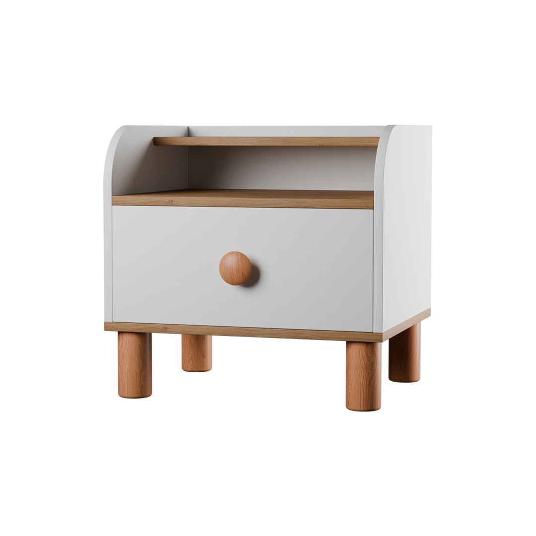پاتختی موکا با طراحی مینیمالیستی و مدرن، ظاهری آرام و شیک دارد که به راحتی با دکور اتاق هماهنگ میشود. ترکیب چوب طبیعی و MDF با رنگ های خنثی، حس گرما و زیبایی را به فضا میبخشد. این پا تختی با دستگیره ها و پایههای چوبی هماهنگ، جلوهای یکدست و مدرن در کنار تخت شما ایجاد میکند.