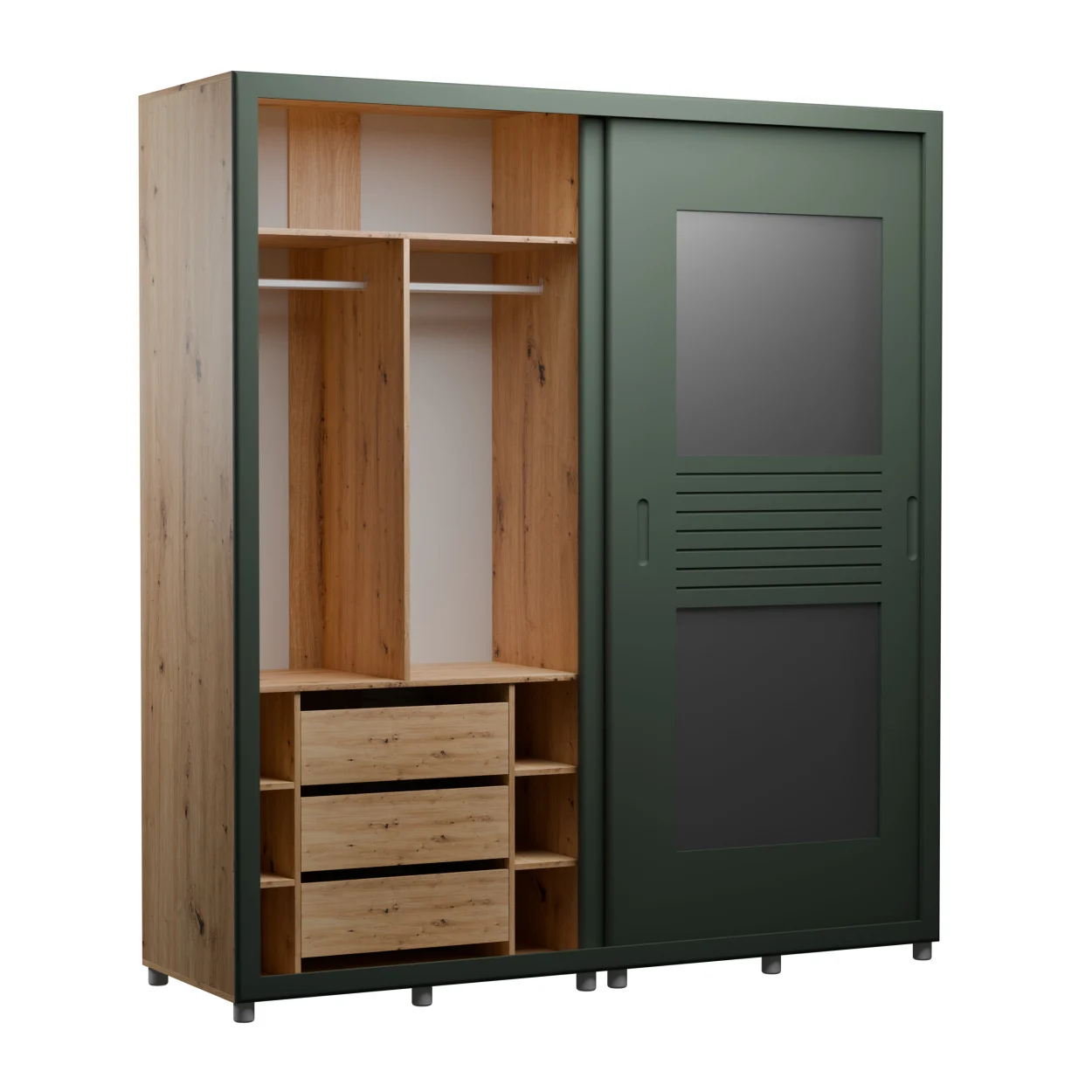 • کشوهای جادار برای نظم‌دهی لباس و وسایل شخصی